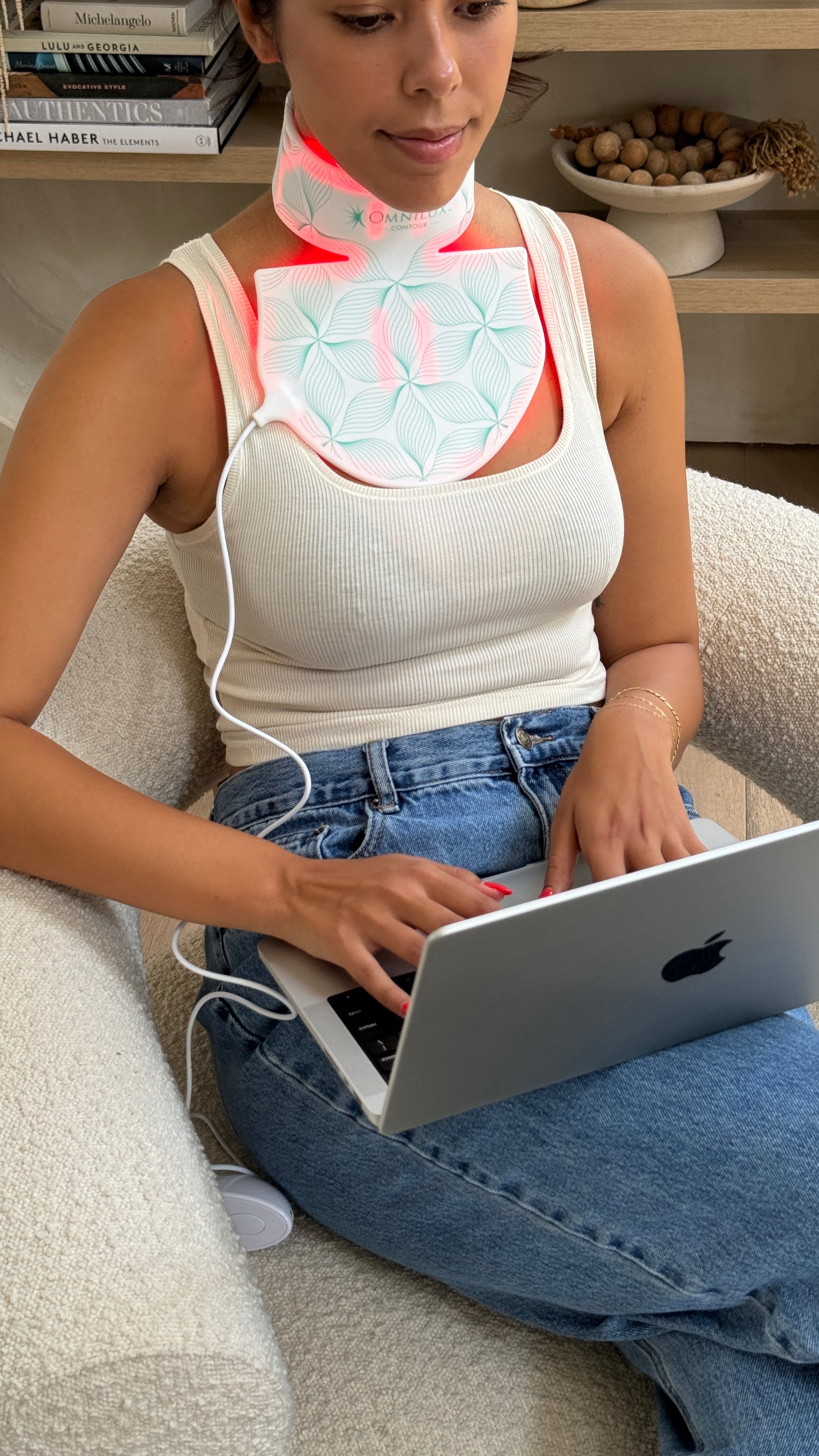 Your glow doesn’t stop at the jawline! For the ultimate, full-coverage LED experience, combine the Omnilux Contour™ Face Mask with the Omnilux Contour™ Neck & Décolleté Mask.