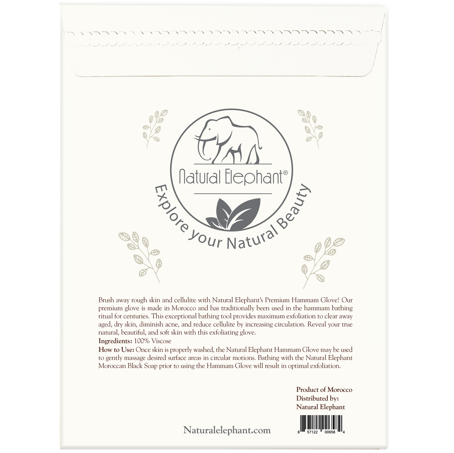 Wet your Hammam Glove and apply Moroccan Black Soap or your favorite body wash. Massage the skin in firm, upward strokes to remove dead skin and impurities. Rinse thoroughly and moisturize to reveal soft, glowing skin.